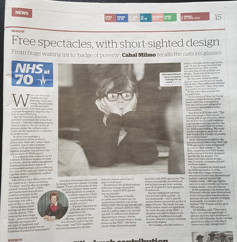 I started my career change by revisiting my work on NHS eyewear and taking it to a wider audience by working with journalists, optical collectors, and the Science Museum London.